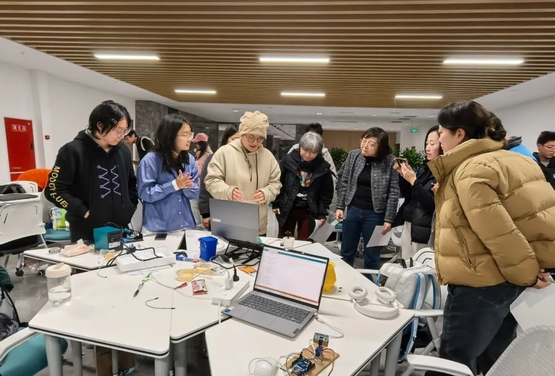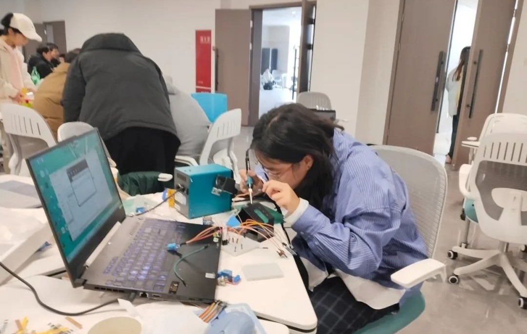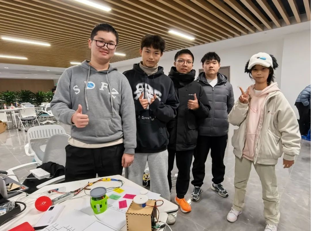 17 日早上 7 点 30 分,当工作人员抵达现场时,已有不少同学提前开工。活动正式开始后,现场紧张而有序,同学们争分夺秒,充分利用 8 个小时的创作时间,将创意与技术融入作品之中。与此同时,集成电路学院 FablabSIC(307)实验室全面开放,为同学们提供了丰富的实验资源和设备支持。