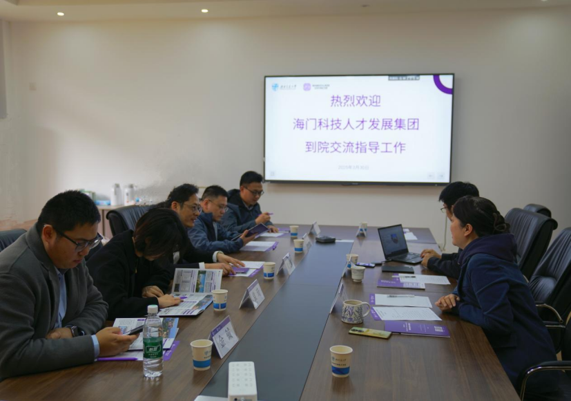 与海门科技人才发展集团在 X1408 会议室展开深度交流。学院常务副院长郝莉、产教合作主管刘东,与海门科技人才发展集团董事长高允辉、科技人才工作部沈洋、科技服务部袁琦等一行,联合海门区委组织部、成都研转科技、四川远为芯途半导体等多方代表齐聚一堂,共商集成电路领域产教融合新路径。