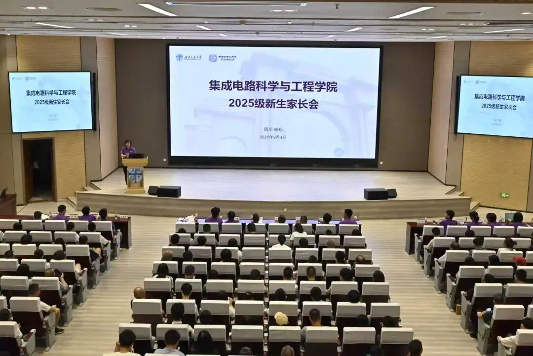 为深化家校协同育人,搭建多维沟通桥梁,2025年9月4日19:00,学院2025级新生家长会在犀浦校区智能虚拟仿真实验教学中心二层203报告厅举行。学院党委书记赵舵、常务副院长郝莉、党委副书记王燕、副院长宋文胜、邸志雄、产教融合主管刘东出席会议,新生家长、25级班导师、辅导员、朋辈导师参加会议。会议由王燕主持。