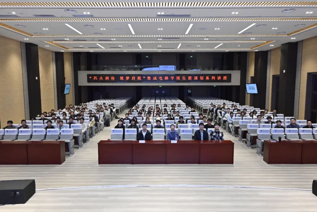助推产教融合,强化“生涯领航力”。紧扣行业需求与个人发展,通过校企合作与产教融合,搭建理论与实践衔接的桥梁。邀请中车科学家刘国友开展“轨道交通中的功率半导体”专题讲座,勉励学子坚定信念、勇于创新,成长为集成电路领域的卓越人才。组织“我与中国式现代化”主题班会,带领研究生走进成都高投芯未半导体有限公司,实地了解行业前沿动态与人才需求,培养学生的行业思维与前瞻视野,为职业发展蓄力赋能。“走出去”与“请进来”相结合,邀请中车株洲机车研究所、飞腾信息技术有限公司技术负责人进校宣传交流,深化校企合作,引导学生深刻感悟攻克芯片“卡脖子”技术瓶颈,强化学生服务国家科技自立自强战略中的探索实践与使命担当。