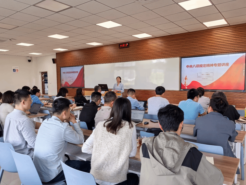 首先,学院特邀马克思主义学院李春梅教授作中央八项规定精神专题辅导。李春梅教授深入浅出地阐述了“中央八项规定”与“中央八项规定精神”的区别,阐释了学习中央八项规定精神的背景与意义。她结合典型案例,为教职工详细解读了中央八项规定的内涵、核心、实施细则、查改三维路径、重点领域风险防控、长效机制建设等内容。她指出,深入贯彻中央八项规定精神学习教育是推进全面从严治党的必然要求,强调作风建设是一项长期而艰巨的任务,永远在路上。李春梅警醒广大教师警醒教职工要以身作则,行为示范,遵守纪律规定,保持敬畏之心,做到不触碰红线、不逾越底线,保持人民教师清正廉洁的本色。