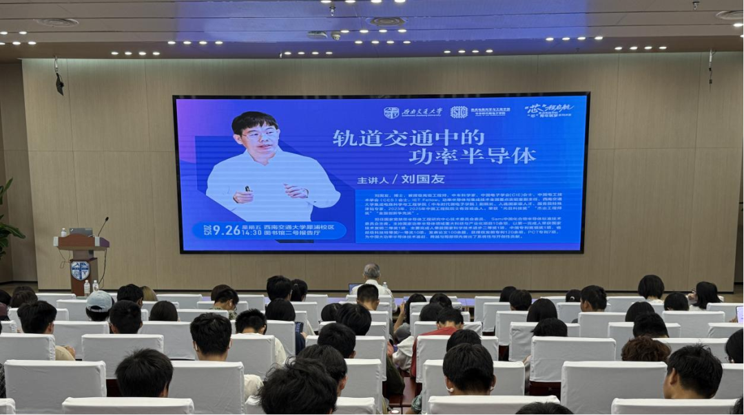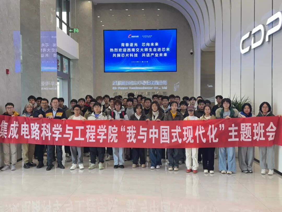 助推产教融合,强化“生涯领航力”。紧扣行业需求与个人发展,通过校企合作与产教融合,搭建理论与实践衔接的桥梁。邀请中车科学家刘国友开展“轨道交通中的功率半导体”专题讲座,勉励学子坚定信念、勇于创新,成长为集成电路领域的卓越人才。组织“我与中国式现代化”主题班会,带领研究生走进成都高投芯未半导体有限公司,实地了解行业前沿动态与人才需求,培养学生的行业思维与前瞻视野,为职业发展蓄力赋能。“走出去”与“请进来”相结合,邀请中车株洲机车研究所、飞腾信息技术有限公司技术负责人进校宣传交流,深化校企合作,引导学生深刻感悟攻克芯片“卡脖子”技术瓶颈,强化学生服务国家科技自立自强战略中的探索实践与使命担当。